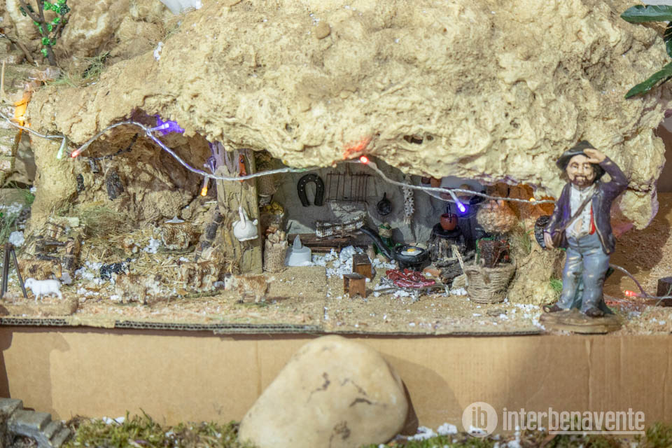 Uno de los rasgos más característicos de su montaje es el uso de materiales reciclados. “Nos gusta añadir detalles siempre en tono rústico y, sobre todo, reciclando”, afirma Nina. Cartón, papel, porexpán y todo tipo de elementos reutilizados se convierten en montañas, casas, herramientas o utensilios. Durante el año, cada integrante va guardando lo que puede, y llegado el momento, todo encuentra una segunda vida en la maqueta.
