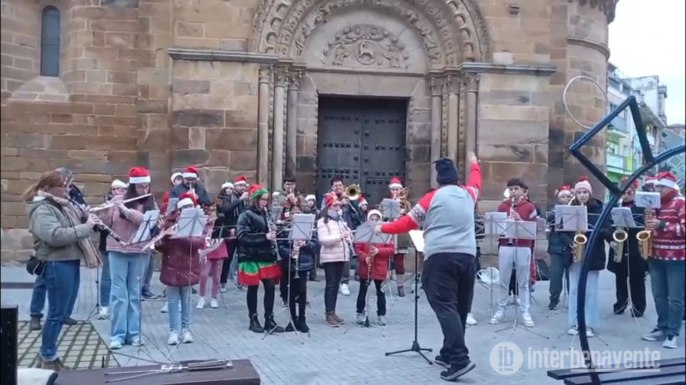 Esta tarde, un grupo de músicos de la Banda de Música, dirigida por José López Cid, interpretaron durante una hora una selección de villancicos en la Plaza de Santa María