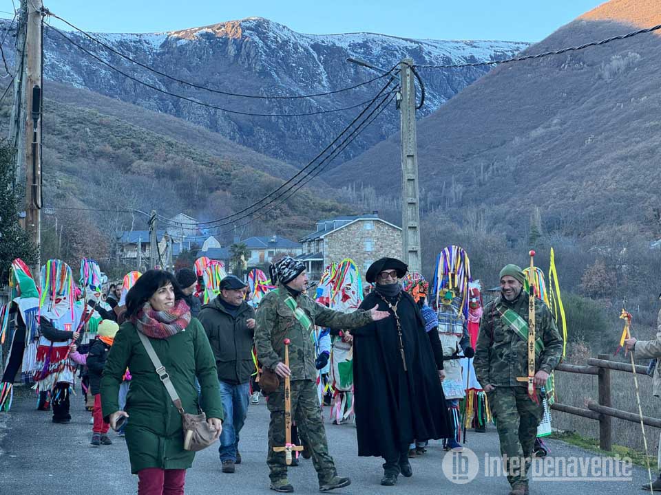 Tras este ritual, la comitiva continuó su andanza hasta el puente del río, donde dos talanqueiras desafiaron las gélidas aguas del Forcadura para cumplir con la ancestral tradición del rito del baño. La fiesta prosiguió después por las calles del pueblo con la tradicional pedida del aguinaldo. Algunos vecinos ofrecieron embutidos a los visparros, que los recogían simbólicamente con su característico tridente.