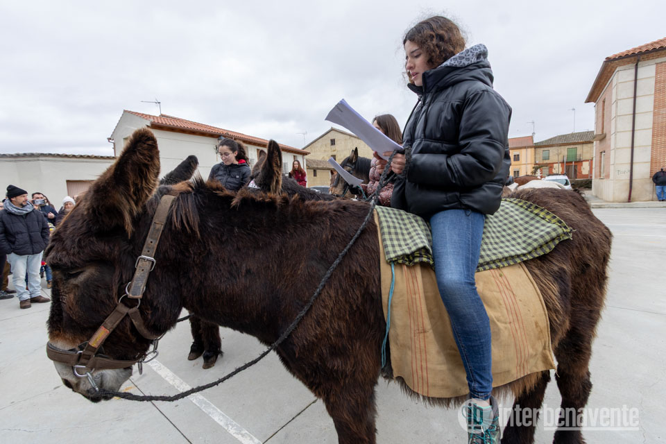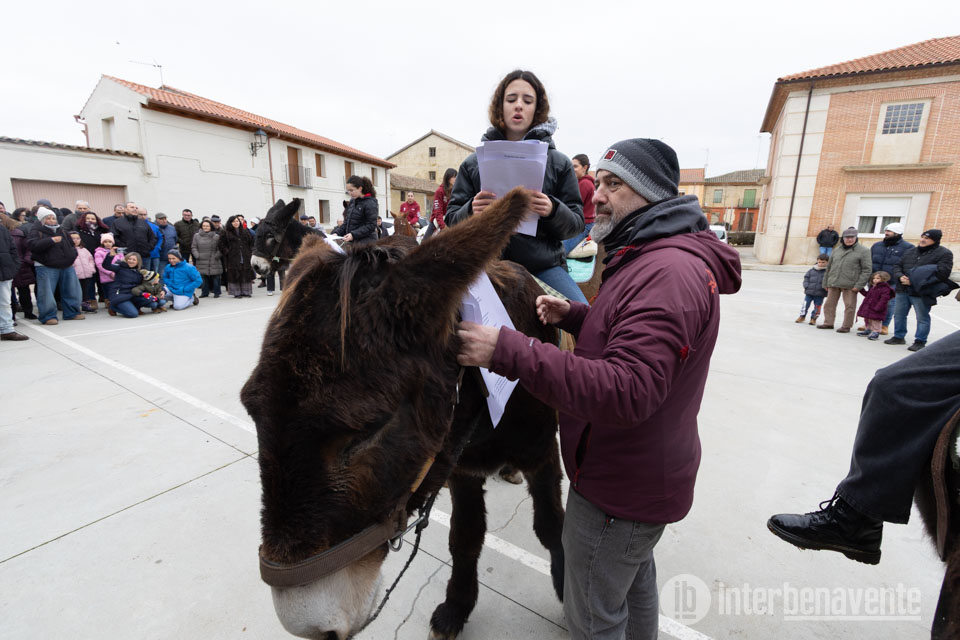 La jornada grande de San Antón comenzó con la misa en honor al santo, tras la cual los jóvenes, montados unos a caballo, los quintos del año, y otros en burro, los entrantes para el próximo año, según marca la tradición, tomaron la palabra para recitar los populares refranes o “relaciones”. Algunos lo hicieron leyendo desde el móvil, otros desde el papel, una imagen que dejó ver cómo la fiesta evoluciona sin perder su esencia.