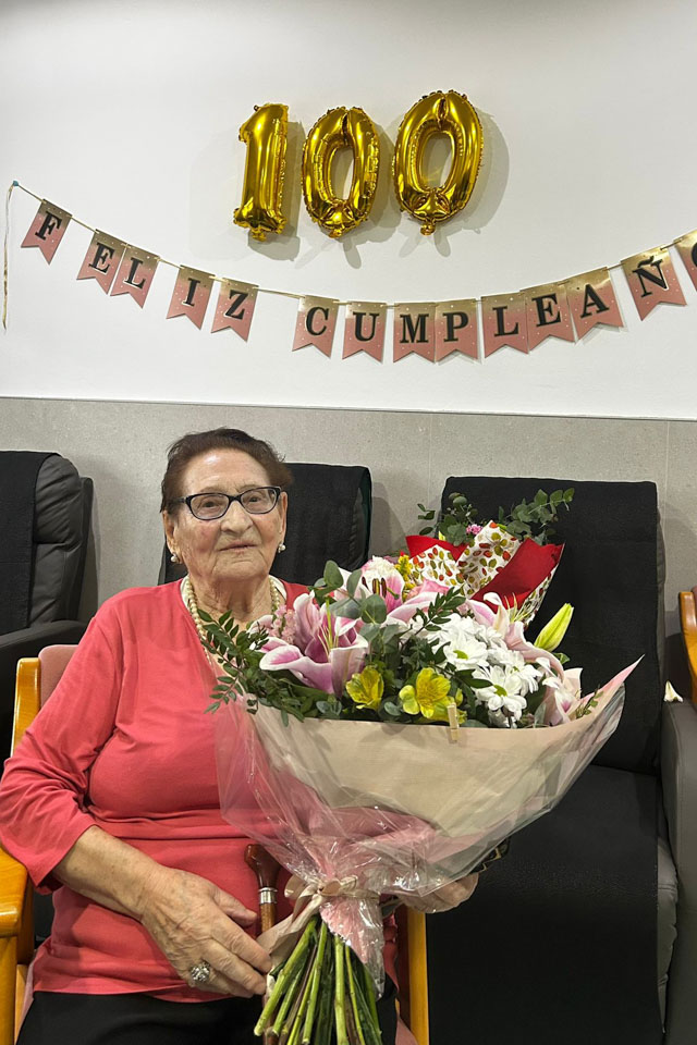 Antes de concluir, le entregó un ramo de flores en nombre de todos los vecinos de Friera, acompañado de un mensaje sencillo pero cargado de sentimiento: “Gracias por tu legado, por tu sonrisa y por ser ejemplo de longevidad y de dignidad. Que sigas cumpliendo años con esa paz que transmites”.