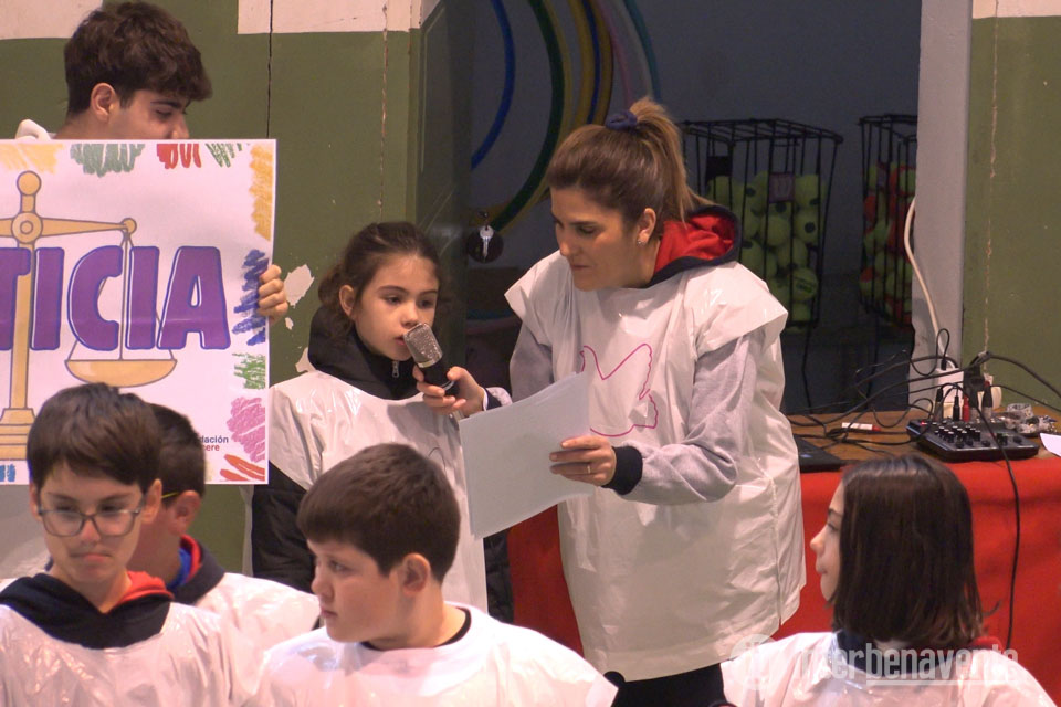 acto que, aunque estaba previsto inicialmente en la calle, tuvo que trasladarse al pabellón de deportes debido a la lluvia. El cambio de ubicación no restó participación ni emoción a una celebración que reunió a muchas familias del centro, llenando por completo las gradas para acompañar al alumnado en una jornada dedicada a los valores de convivencia y respeto