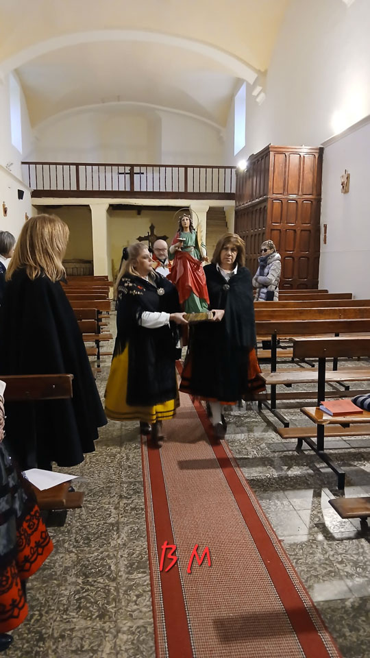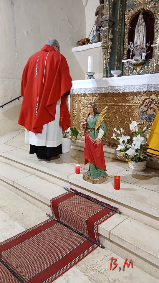El grupo se dirigió después a la iglesia parroquial, donde tuvo lugar la misa en honor a Santa Águeda. La procesión prevista tras la ceremonia tuvo que suspenderse debido a la persistente lluvia, aunque esto no restó solemnidad ni emoción al acto religioso.
