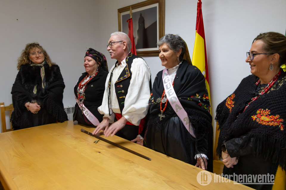 Para no cancelar el acto, la Águeda Mayor saliente, Angélica López, y la nueva Águeda Mayor, Tere Rodríguez Rubio, tuvieron que desplazarse en coche hasta el salón de plenos municipal, donde finalmente se llevó a cabo la ceremonia. Allí, en un ambiente más íntimo de lo habitual, se realizó el traspaso de poderes, un momento especialmente emotivo este año por una circunstancia singular: la nueva Águeda Mayor es la esposa del alcalde, Salvador Domínguez.