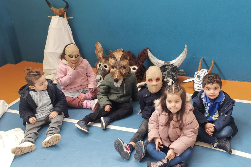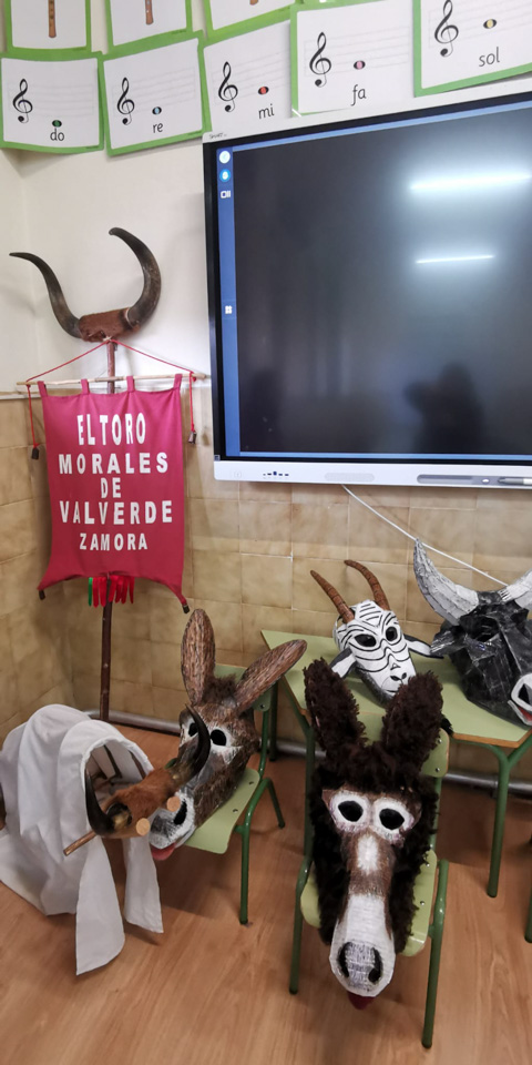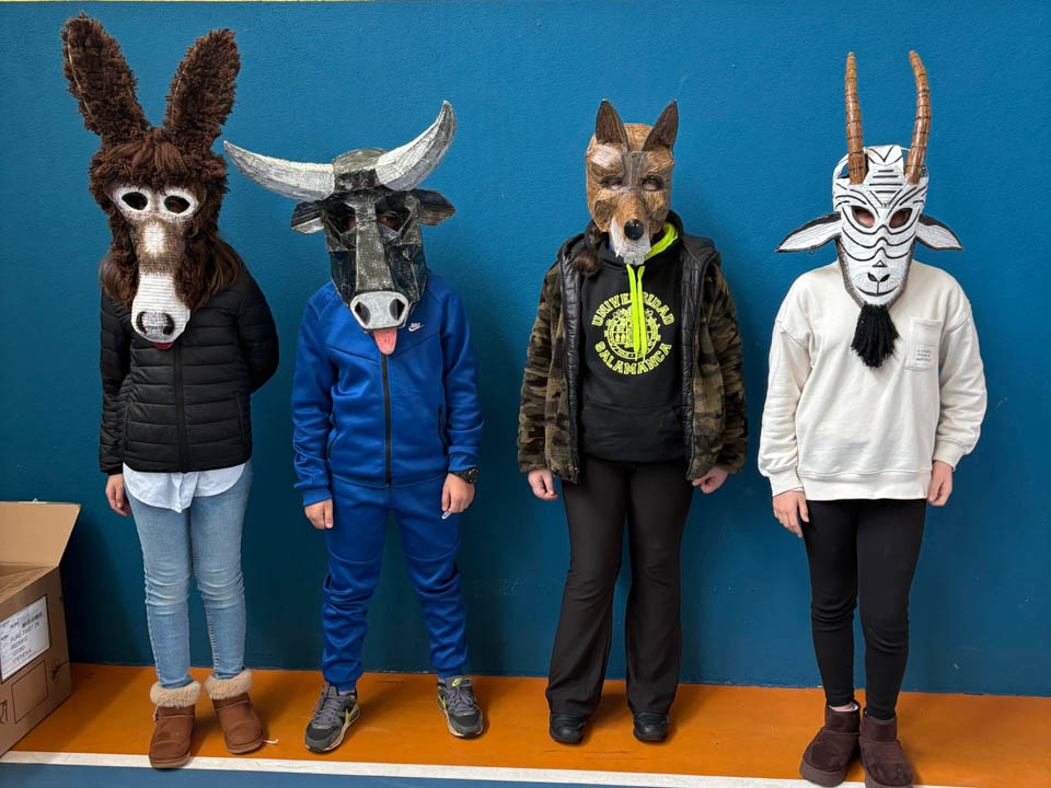 La actividad tuvo también un componente práctico y lúdico: los niños pudieron probarse las máscaras y recrear, en el gimnasio del centro, una pequeña representación del Toro de Carnaval, corriendo y jugando como lo hacen los mozos en Morales cada mes de febrero. Una experiencia que despertó curiosidad y entusiasmo entre los más pequeños.