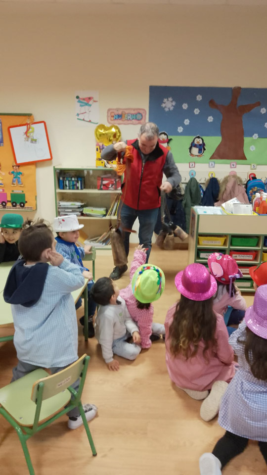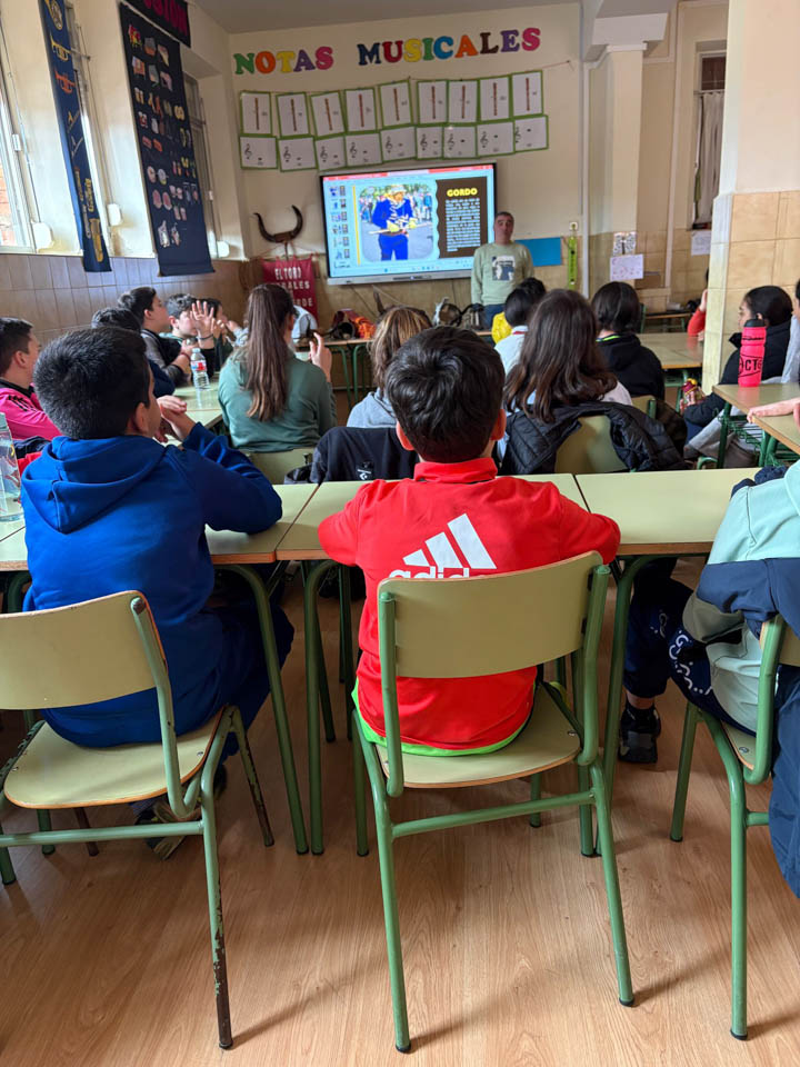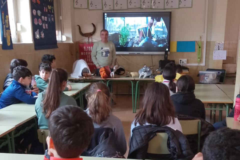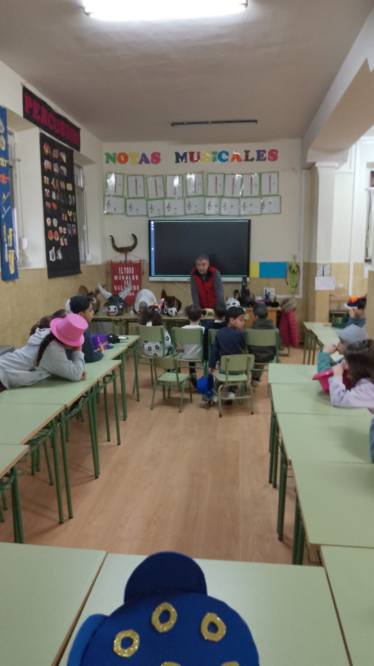 Durante dos jornadas, martes y miércoles, Macho compartió con los escolares el origen, la evolución y el significado de esta fiesta, declarada Bien de Interés Cultural (BIC) por la Junta de Castilla y León. Los alumnos siguieron con gran interés sus explicaciones y pudieron ver de cerca algunos de los elementos más característicos de la mascarada, desde las máscaras hasta partes del atuendo tradicional que utilizan los participantes.