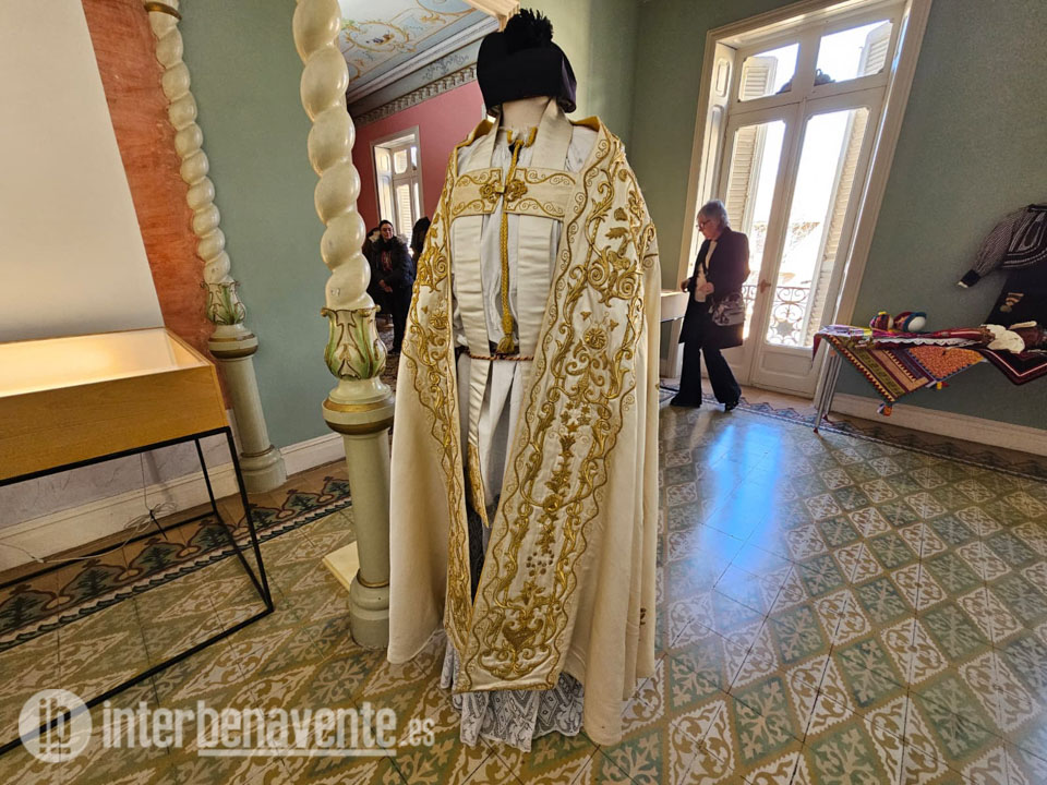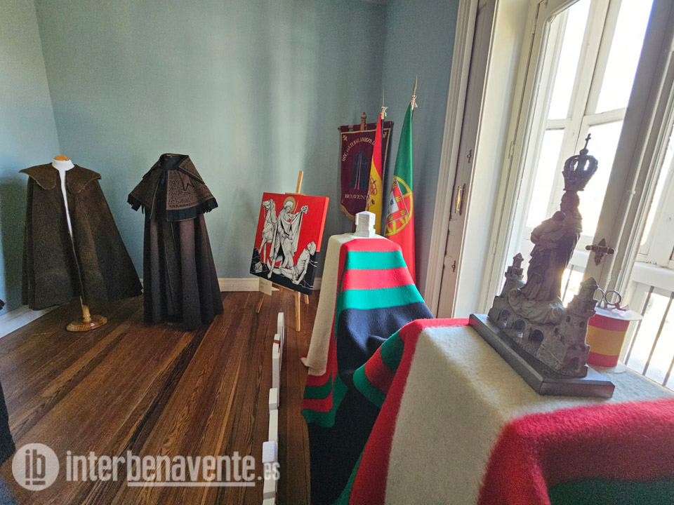 Trilla señalaba que las capas provienen en parte de colecciones privadas y de algún colectivo que datan desde el S.XVIII, en concreto una de pardo o capa de aleta de murciélago, es la primera que recibe al visitante cuando entre en la sala noble del Centro Cultural Soledad González. También se encuentra la capa eclesiástica del Corpus Christi de Benavente “Es una capa del siglo XIX, está bordada en oro, en realce, y está traspasado el tejido antiguo, porque estaba muy deteriorado, a un tejido nuevo, pero ya con cierto tiempo. Y fue confeccionada en Valencia por las monjas, las religiosas Adoratrices. También nos ha parecido importante colocarla porque no deja de ser una seña de identidad también de nuestra ciudad y de una de nuestras grandes fiestas, como es la del Corpus”.