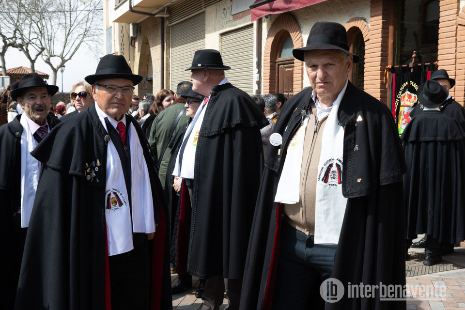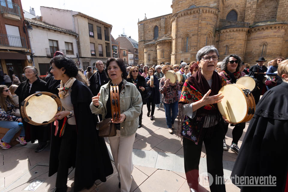 Los sones tradicionales se acoplaban al movimiento de las capas con sus característicos bordados o sombreros en una jornada que pretender recuperar la esencia de la tradición. De camino a la Plaza Mayor donde fueron recibidos por la Alcaldesa de Benavente, Beatriz Asensio con la Corporación Municipal.