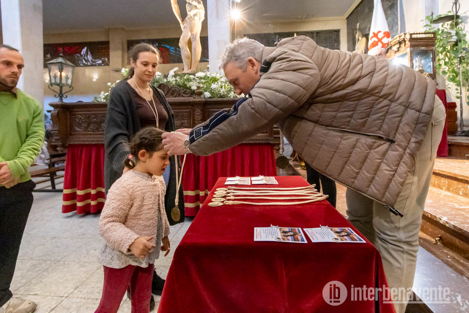 Durante la eucaristía se celebró también el acto de imposición de medallas a los nuevos miembros, algunos de ellos todavía en brazos de sus madres, de la Cofradía del Silencio, un gesto cargado de significado que marca su incorporación plena a la hermandad. El rito, sencillo y solemne, fue recibido con emoción por los asistentes, que llenaron el templo en este inicio del triduo.