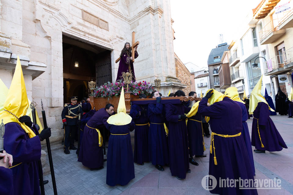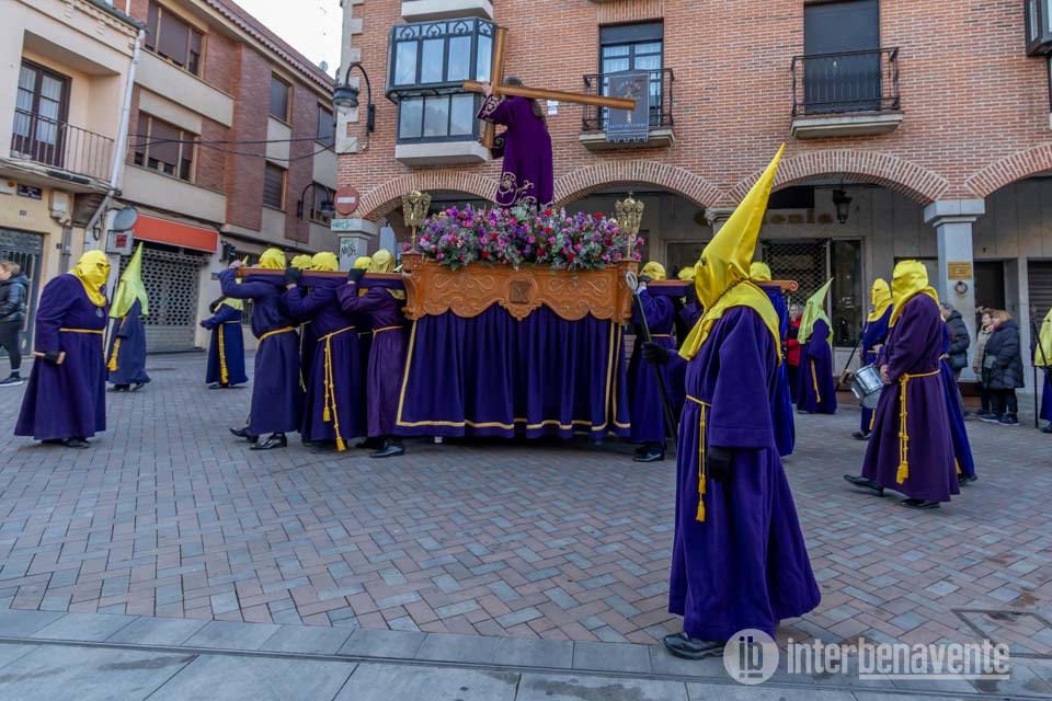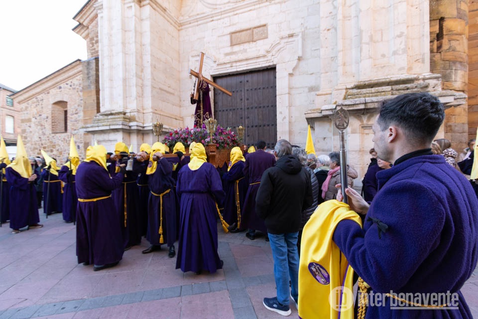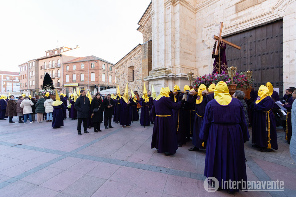 Tras finalizar el acto dentro del templo comenzaba la procesión del Encuentro con las imágenes de Jesús Nazareno y la Virgen de la Dolorosa con un recorrido alternativo debido a la pavimentación de la Calle la Rúa, lo que hacía que ambas imágenes se dirigieran hacia la Plaza Mayor por la Calle Herreros. Durante este recorrido se rezaba el Santo Vía Crucis marcado por catorce cruces que simbolizan las estaciones, acompañada este año por el suave y lento sonido de un tambor, que rompió el silencio de esta procesión.