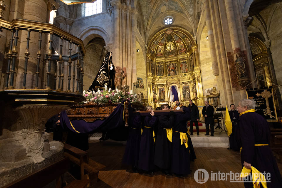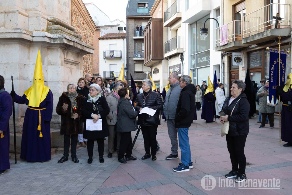 Una vez finalizado este acto religioso en la Plaza Mayor emprendieron camino de nuevo a la Iglesia de Santa María del Azoague, realizando las estaciones del Via Crucis por la calle de los Herreros, para finalizar en la plaza de Santa María con el canto de la Salve.