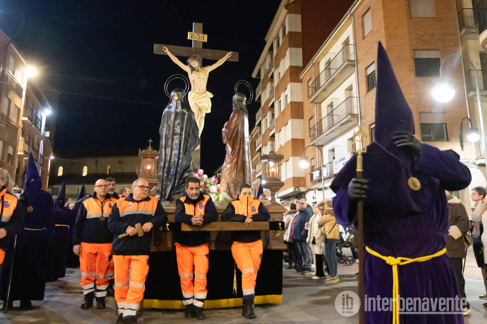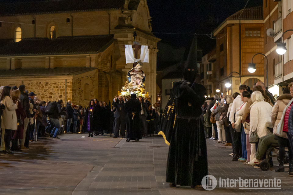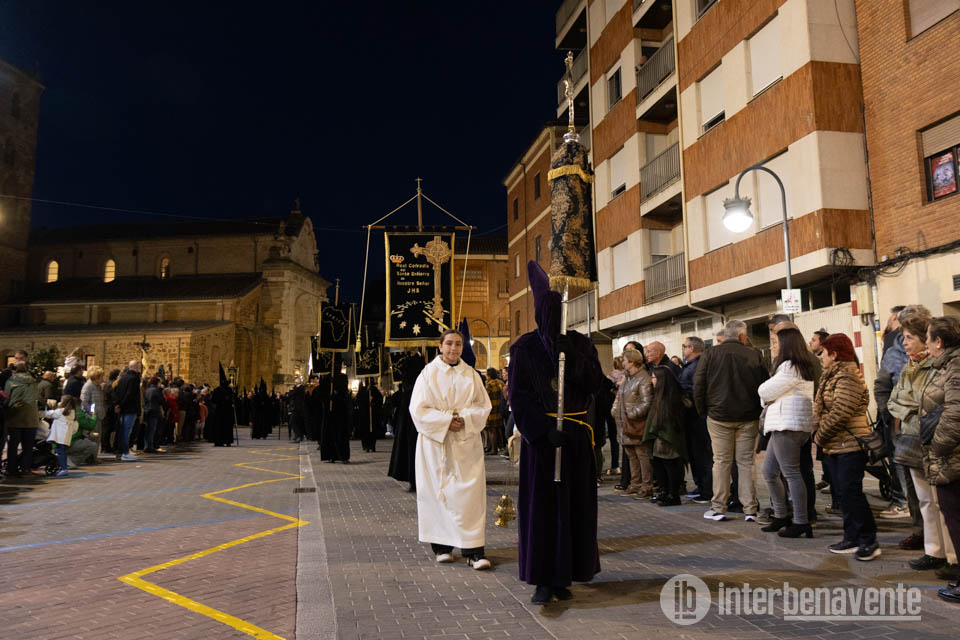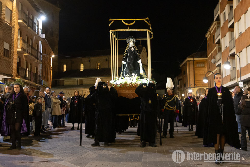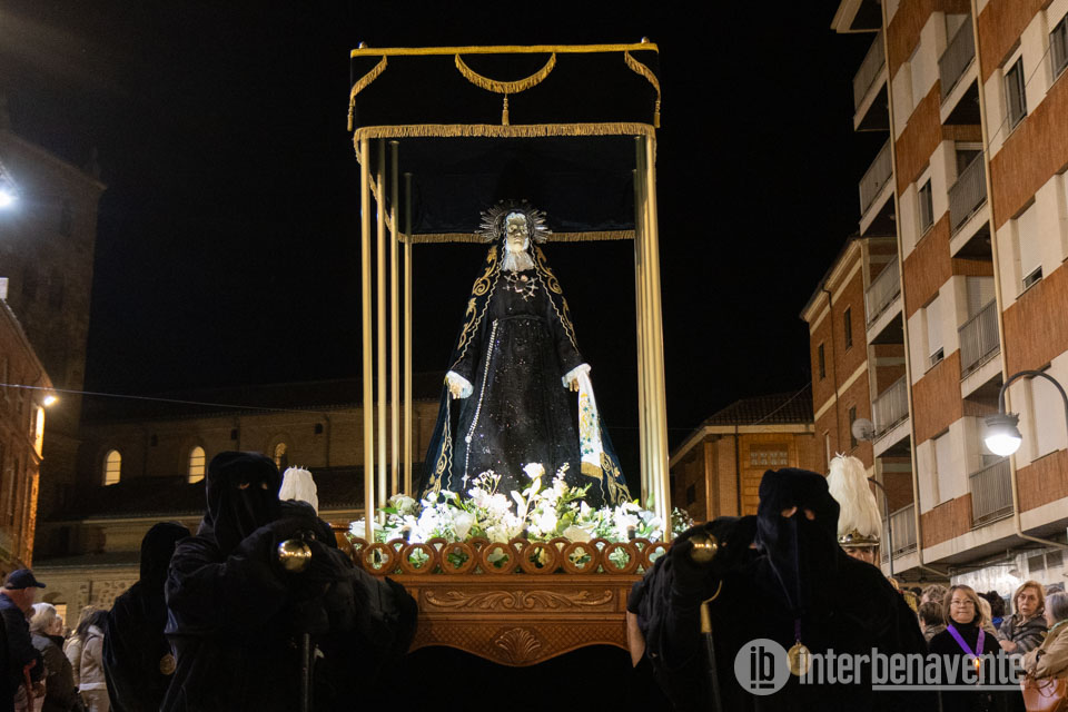 La Semana Santa de Benavente vuelve a recibir con recogimiento a la Magna Procesión del Santo Entierro, lo hacen con el canto del Miserere a cargo de la Coral Benaventana en el interior de la Iglesia de Santa María, mientras tanto los pasos se disponen alrededor de la Plaza mostrándose a los visitantes en una tarde completamente primaveral.