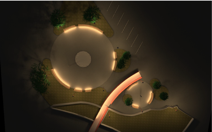 La iluminación resaltará volúmenes vegetales, generará juegos de luces y sombras, aportará profundidad visual y mejorará la percepción nocturna.