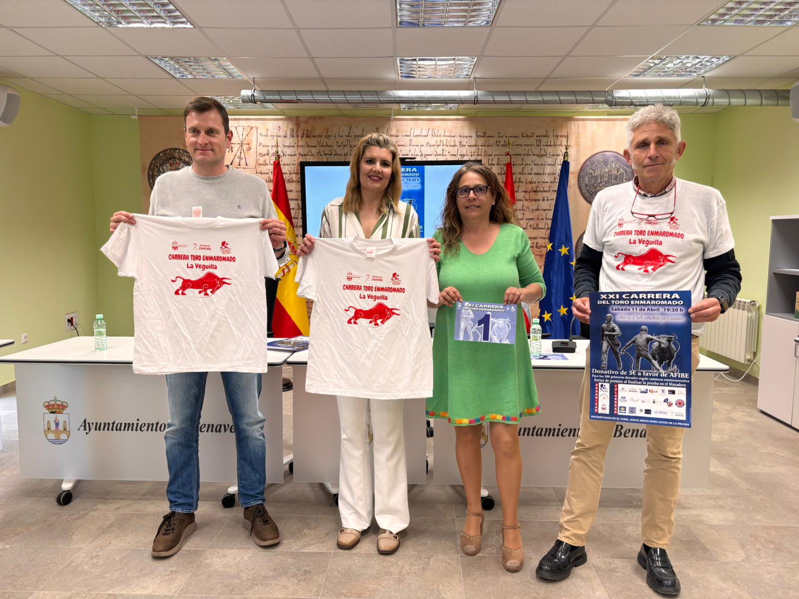 José Carlos Charro del Benavente Atletismo anunciaba la presencia de una charanga en la actividad deportiva para animar la salida, además de la típica maroma y el carretón de Gente del Toro “no quiero olvidarme tampoco de la Gente del Toro, que son ellos los que van a sacar la maroma, acompañaremos nosotros tirando también la maroma, y el carretón, llevan haciéndolo desde que comenzamos ya nuestra andadura hace 21 ediciones, seguimos contando con ellos, queremos hacer un llamamiento también a las otras asociaciones taurinas, porque el Toro Enmaromado no solamente es de la Gente del Toro, también hay otras asociaciones, dentro de poco vamos a tener un congreso, pues bueno, por reivindicar un poco nuestra tradición y ser solidarios con AFIBE”.