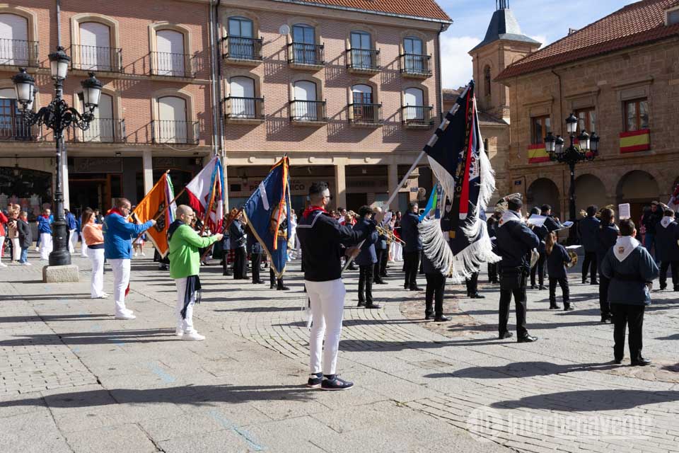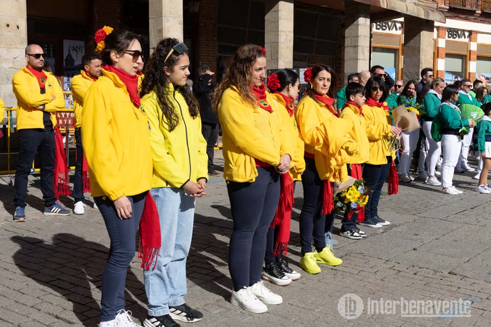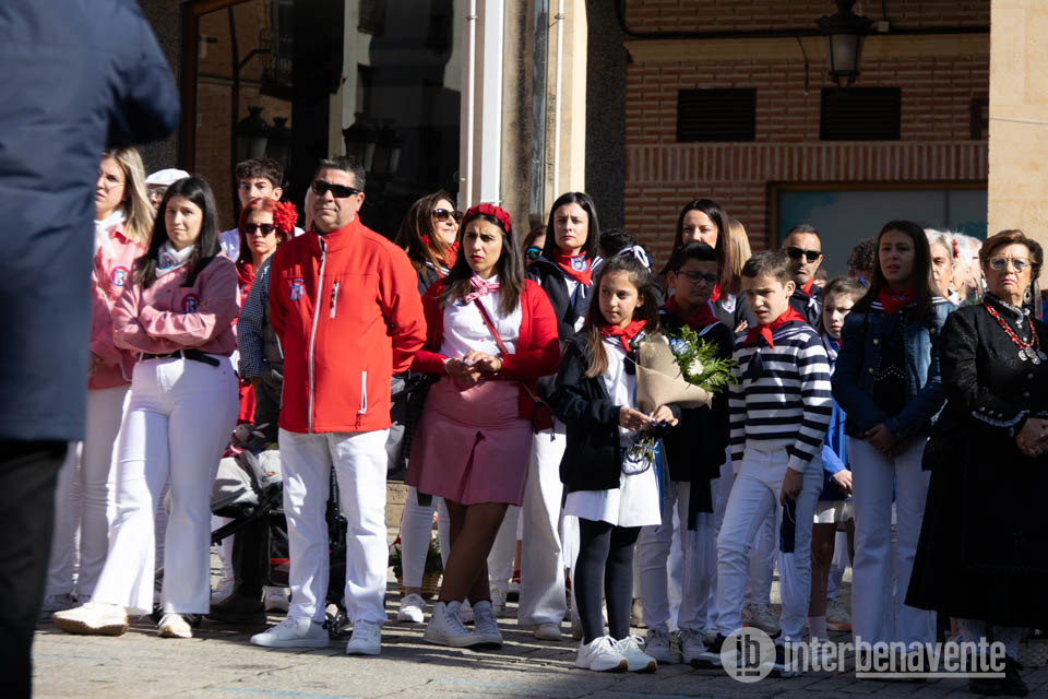 Eran las 10:30 de la mañana del lunes más importante de Benavente, el día en el que se celebra su Patrona la Virgen de la Vega, y este año, como es habitual el punto de encuentro ha sido la Plaza Mayor donde autoridades y peñistas se concentraban para iniciar su camino hacia la Iglesia de Santa María y poder llevar a cabo la procesión de la Virgen de la Vega.