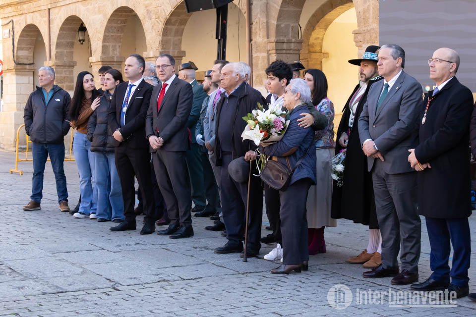 Arropando el acto las banderas de las doce peñas oficiales del Toro Enmaromado, además de Corporación Municipal y autoridades regionales, provinciales y estatales, también militares. Pero en un primer término los familiares de Carlos Fresno recibían un ramo de rosas mientras Angel María Trilla recitaba el poema de León Felipe “Corazón mío” para posteriormente iniciar la melodía de ‘La Alborada’.