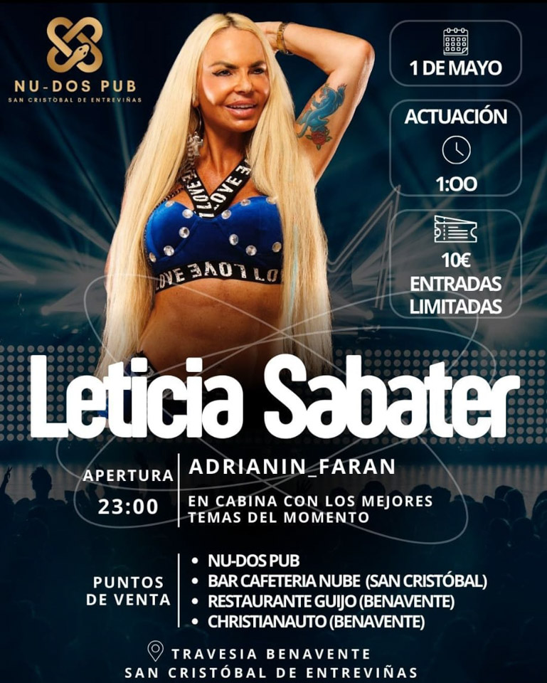 Desde la organización aseguran que será un show “para no perderse”, con una Leticia Sabater en plena forma, dispuesta a convertir la madrugada del 1 de mayo en una auténtica fiesta sin complejos.