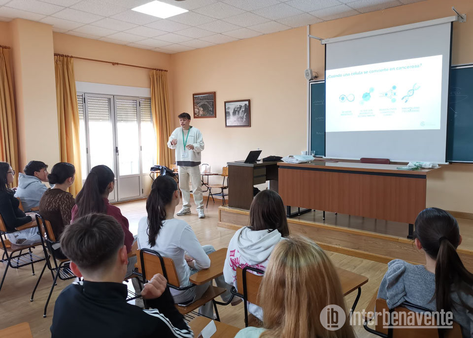 Las aulas de Benavente se transformaron este viernes en un espacio donde la ciencia dejó de ser teoría para convertirse en una realidad cercana, tangible y llena de esperanza. El joven investigador benaventano Pablo Miñambres Barrio regresó a los centros en los que se formó para compartir su experiencia y conocimientos con el alumnado del Colegio Virgen de la Vega y del IES Los Sauces, dentro del programa «Voluntariado por la Ciencia» impulsado por la Asociación Española Contra el Cáncer (AECC)