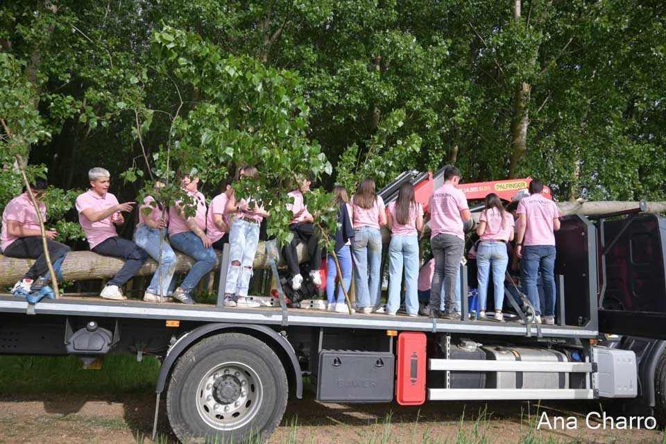 A las 17:00 horas comenzó el protocolo de la Subida de la Viga, que comienza con los quintos llegando a un paraje cercano al pueblo donde ya han seleccionado un gran tronco para trasladar en un remolque hasta la zona junto al polideportivo donde tiene lugar el alzamiento mecánico con una grúa de la gran viga que representará la tradición festiva de los quintos.