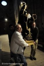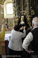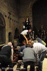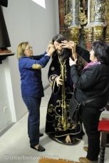 Los hermanos y hermanas de la Cofradía de Jesús Nazareno se encontraban hoy preparando las imágenes que realizarán la procesión del Encuentro el próximo viernes a las 7:45 horas.