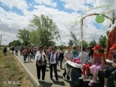 El dia festivo comenzaba con la procesión hasta el prado del rio, donde se celebró la misa en honor a la patrona del pueblo.