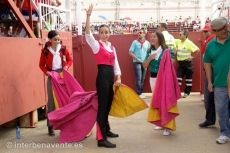 Para celebrar su trigésimo quinto aniversario los valientes de la peña Malgrat portaron el número 35 a la espalda y cantaron el cumpleaños feliz a ritmo de charanga. Alicia Regueras, Sandra Cid y Cynthia Escudero representantes de la juventud benaventana también se vieron las caras con un astado, más pequeño que los demás, con el que hicieron una buena faena y recibieron la ovación del público.