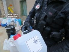 En el registro de esta vivienda se intervinieron diversos compuestos químicos esenciales para la fabricación de este tipo de sustancia como ácido sulfúrico, alcohol benzílico, ácido clorhídrico, amoniaco, sosa caústica, carbonato sódico, manganeso de sulfato, un bidón de cianuro y ácido acético. Además se intervino diverso instrumental: varios quemadores de gas, una envasadora al vacío, bidones de acero inoxidable, máscaras antigás, alambiques, material eléctrico, camping gas con soplete, matraces, pipetas y otros recipientes.