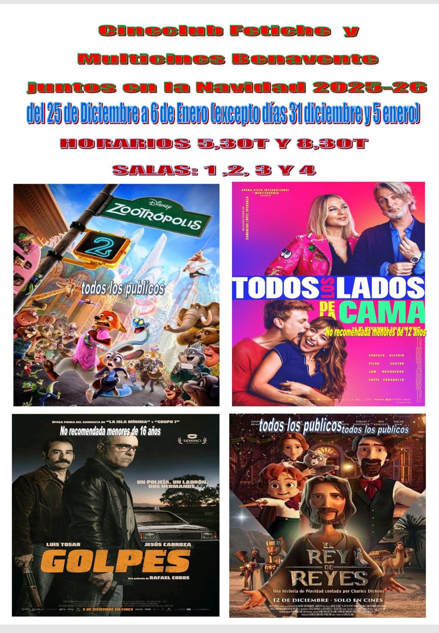 ‘Zootrópolis 2’, ‘Todos los lados de la cama’, ‘Golpes’ y ‘El Rey de Reyes’ son las cuatro películas programadas [...] Leer más...