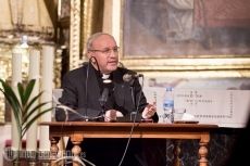 Para finalizar su conferencia dejó en el aire algunas preguntas para la reflexión personal de los asistentes, que siguieron atentamente el profundo contenido religioso de esta conferencia dedicada a los cofrades, a los que llamó discípulos misioneros, "llamados para escuchar, enviados para anunciar".