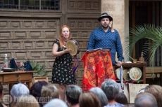 El grupo de música tradicional “Alborada” compuesto por Camino Fernández y Ángel María Trilla actuó esta tarde en el patio del Hospital de la Piedad.