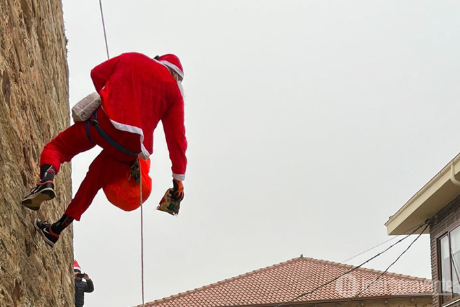Papa Noel llego a Maire de Castroponce desde la torre de su iglesia