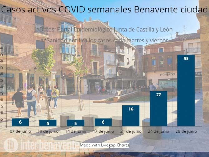 Los casos activos COVID en Benavente ciudad bajan en 9 contagios desde el pasado viernes 1 de julio