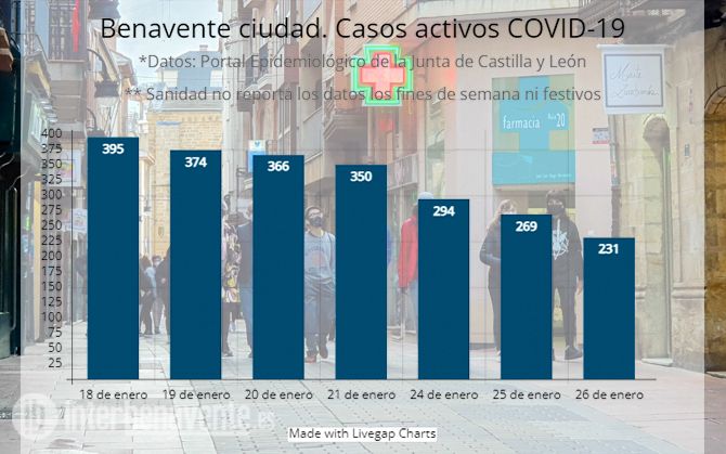 Los casos activos COVID en Benavente ciudad se sitúan en 187, son 25 residentes menos que este pasado jueves