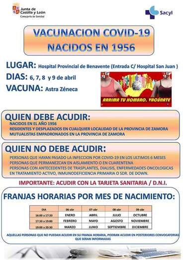 Los nacidos en los meses de abril, mayo y junio de 1956 reciben sus vacunas de AstraZeneca este viernes en el Hospital Comarcal