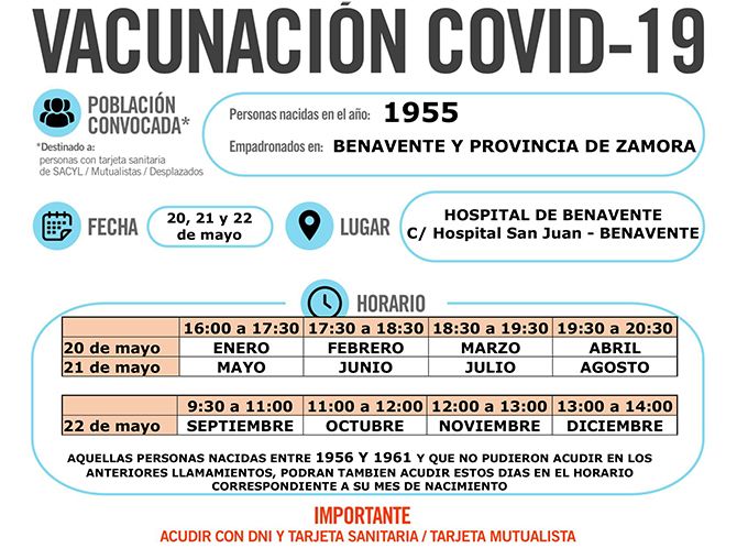 El punto de vacunación en Benavente es el Hospital Comarcal de Benavente Leer más...