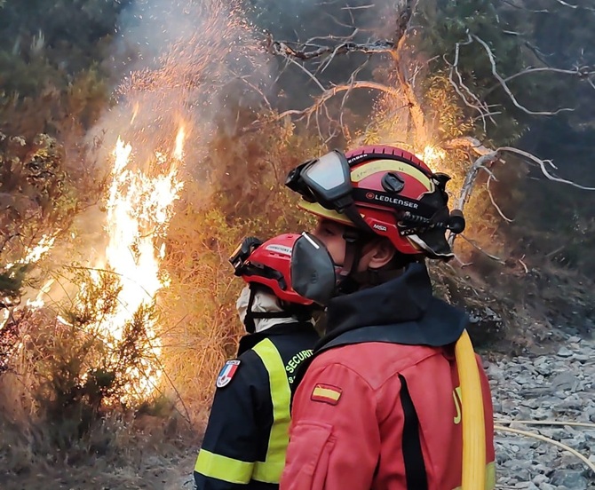 Los trabajos de extinción se centran en los medios terrestres manuales ante la dificultad del terreno para el [...] Leer más...